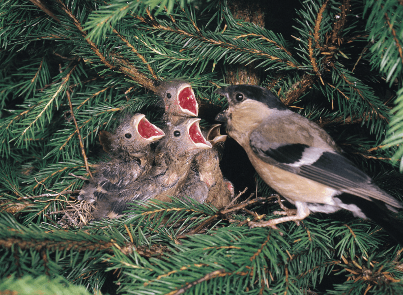 Siberian Bullfinches are substantially larger than Native birds and are said to be easier to breed than the Native subspecies but plenty of people have success with both. The birds use a square nesting box or a canary-style nesting pan and some ventilation in it is a good idea. Coconut fibre may be used to build the nest while some breeders even recommend very thin silver birch twigs.