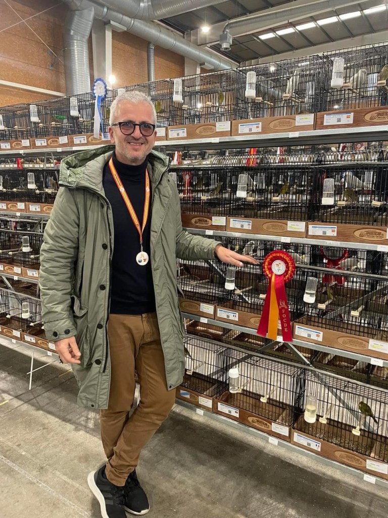 Mike’s first Show was the 68th Confederation Ornithology Mondiale (C.O.M) which was held at Matosinhos in Portugal 2020. As this was his first year entering the competition he was unsure how the birds would compete against some of the best breeders in the world, however he manged to obtain 90 points with a Clear buff hen which was just outside the medals. His second was the 70th WORLD SHOW which was held in Naples Italy 2022. Here he was lucky enough to obtain a Sliver medal with a Blue Cock & with a Stam of Whites. His third was the 71st WORLD SHOW which was held in Talavera De La Reina in Spain. Here he obtained a gold medal with a Stam of variegated yellow hens and also took a sliver medal with the same blue cook that took the sliver in Italy. And finally, I took bronze with a cinnamon cock. The fourth was the 72nd WORLD SHOW which was held in Santa Maria da Feria in Portugal. Here as in 2020 he was just outside the medal ranking,to have obtained 5 medals in the Norwich section over the past 4 years has been a great achievement. In 2024 he applied to sit the OMJ exam for the specialist Norwich section & passed the exam.Becoming the first Irish fancier to ever do so in the Norwich Section and onlt the second Irish fancier ever,Mike would like me to mention his thanks the members and committee of the Eire Ornithological Association (EOA) alongside the members and committee of the International Ornithological Association COM-UK and friends from various countries around Europe that have been very good to give their time and advice to prepare for the OMJ exam.